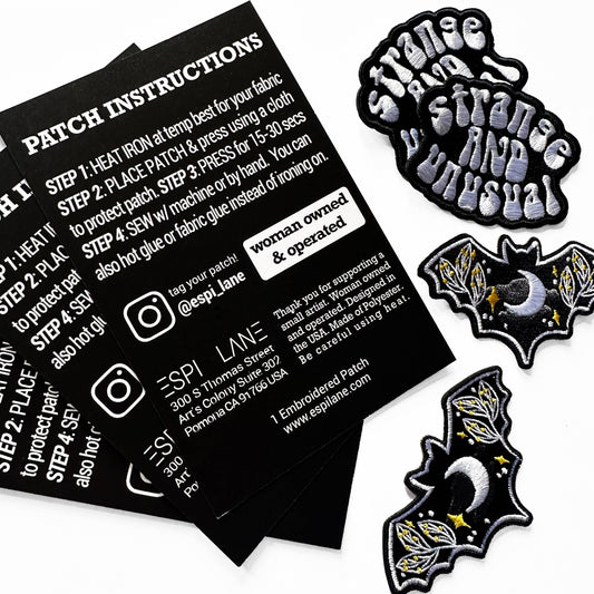Botanical Moon Black Bat Embroidered Iron-On Patch