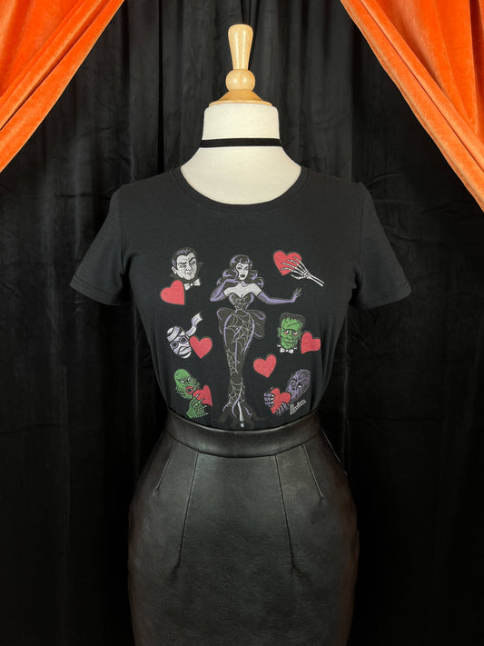 I Love Spooky Bats Black & White Heart Fitted Shirt