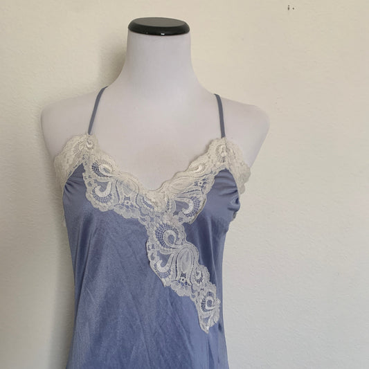 Vintage 1960s LeVoy's Blue & White Lace Nightgown Slip