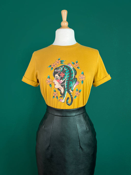 The Blue Tiger Lady Relaxed Tee in Mustard