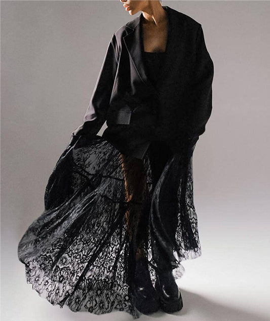 Gothic Mesh Lace High Waist Bustier Maxi Skirt