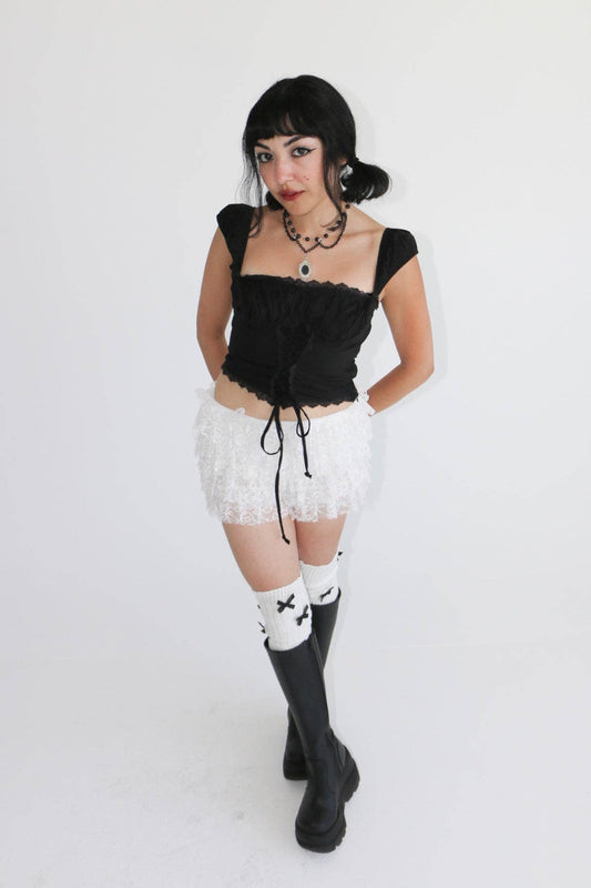 Romantic Goth Black Lace-Up Square Neck Top